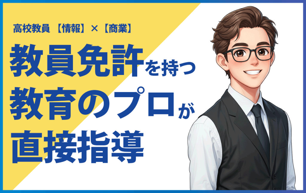 講師は、指導歴25年以上。情報科・商業科の高校教員免許を持つ教育のプロです。学校教育を理解した上で、実社会の事例を題材に指導するため、机上の空論で終わらない学びが実現します。他にはない、このスクールならではの強みです。