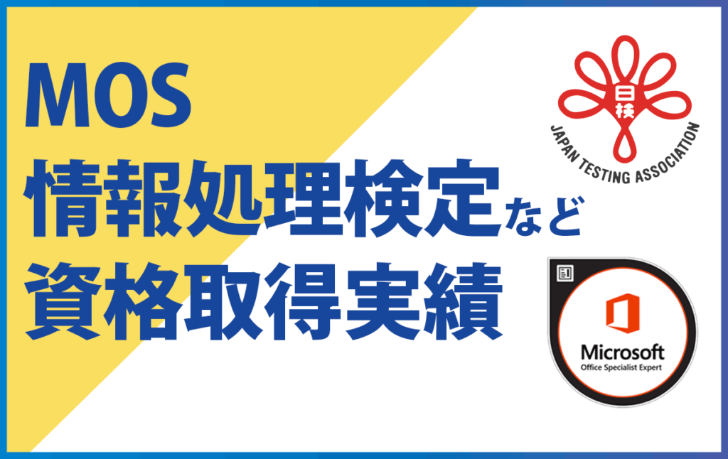 MOSや情報処理検定では合格率100%という実績もあり、学生のうちから履歴書に書ける資格を手にすることができます。